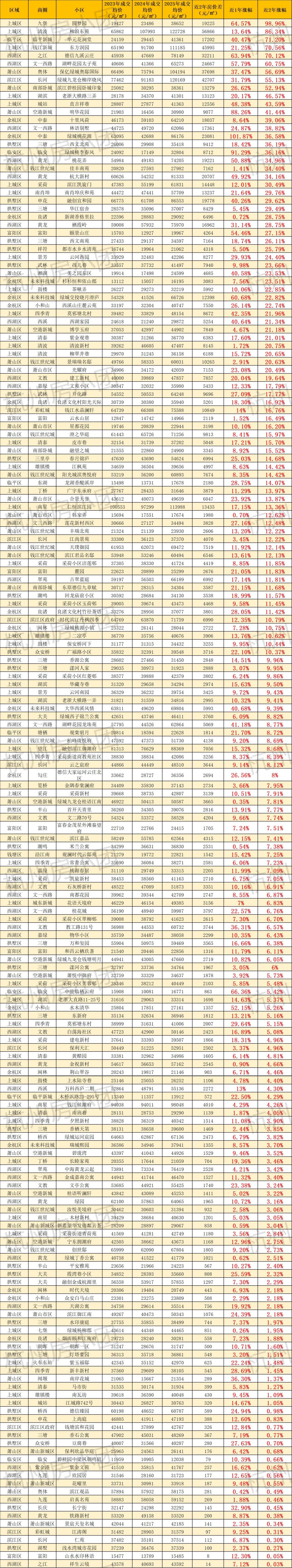 (注:统计数据为2023年、2024年、2025年各小区真实成交均价;涉及小区为历年均有成交,且连续两年成交均价上涨;文中数据来源杭州房小团、中指研究院,不同时期,成交户型、楼层、装修等不同会造成价格变动,仅供参考。)